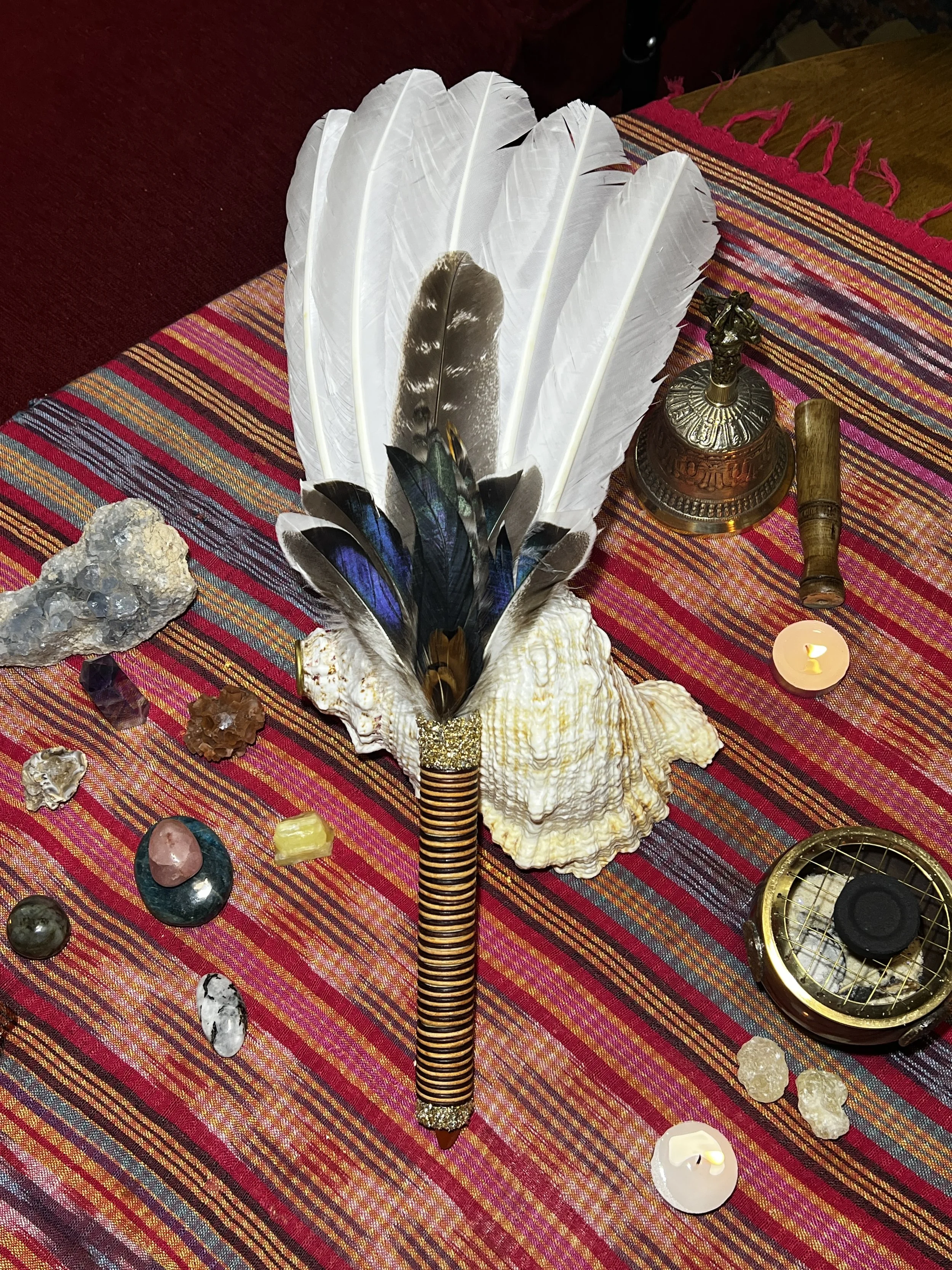 Feathers, in particular, can be used to move energy with intention. The way you guide them matters. You may find yourself gently sweeping energy away from the body or space when clearing, or drawing energy inward when calling in support, nourishment, or protection.